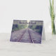 Customize the interior message of this inspirational card using your own message of encouragement. The cover photograph, which sports a soft retro feel, depicts empty railroad tracks running off into the distance and flanked on either side by lush green foliage. The words "Never look back" are printed in deep indigo using a modern script. The interior message reads "Never look back. You're not going that way." but can be changed using the easy provided template.