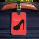 This fun design features a black stiletto high heel on a red background. The text reads, "I never met a shoe I didn't like". The text can easily be changed or removed. Easily customise the background colour by clicking Customise It, Edit and Background. Just fill in the boxes to personalise this luggage tag with your name and contact information.