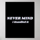 Never Mind I Handled It, Funny Quotes, Sarcastic Poster