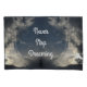 "Never Stop Dreaming" is the focus of this pillowcase adorned with a sky photo that forms a frame of clouds to support the text. The photograph displayed on either side of the front of this pillowcase captures a blue sky with white and grey clouds. A bright area lit by sunlight is pushing through the clouds towards the bottom. The text can easily be customised if you desire.