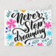 Never stop dreaming - encouragement, self belief, positivity postcard