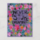 Watercolor Floral Quote: Never Stop Dreaming. Colorful florals and a purple background.