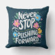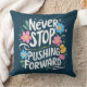 Never Stop Pushing Forward Floral Typography Cushion