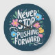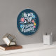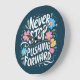 Never Stop Pushing Forward Floral Typography Large Clock