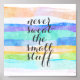 A quote poster never sweat the small stuff pretty abstract watercolor design painted stripes in pastel tones for wall art decor for home or office. Art copyright Ann Powell all rights reserved.