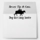 Yeah I have had plenty of cows bring me my food and drink and they never come back to see if I need anything else. Don't ever tip a cow because they give terrible service! Featuring a cow with bell on, delivering food and drink upon a tray on his back.