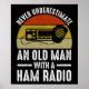 Never Underestimate An Old Man With A Ham Radio. Funny vintage distressed Amateur Ham Radio accessory would be a great gift for a hobbyist ham radio operator to wear in their ham shack. Do you love to operate shortwave & ham radios as a hobby? Do you have an antenna on your roof or backyard? Do you know all the best frequencies? Then this design is for you! Has a graphic of a ham radio set against a retro sunset.