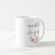 Let her speak! Our typography quote mug features "nevertheless, she persisted" in slate blue handwritten style calligraphy script lettering adorned with a spray of pink and sage watercolor flowers. A perfect gift for the feminist or Elizabeth Warren supporter in your life!