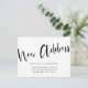 New Address Modern Bold Calligraphy Simple Black and White Moving Announcement Postcard... Modern bold calligraphy script displays your message "New Address." Your name and new home address are displayed just below this announcement. The back of our minimalist change of address card contains all of the updated details your family and friends will need to stay in touch. The example text on front and back (except for the graphic "New Address") can be easily revised on the personalisation template.