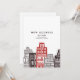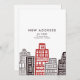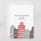 Retro style city with red and black cartoon buildings for a very exclusive new address announcement.