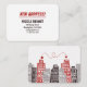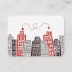 Cute retro style pattern with red and black cartoon buildings for a very exclusive new address announcement.