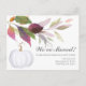 Share the excitement of your new home with these modern moving announcement cards, a perfect choice for Thanksgiving 2025. This stylish “We’ve Moved” change of address design features a warm botanical look with greenery and watercolor leaves in rich fall autumn shades of burgundy, orange, and green, accented by a charming white pumpkin.