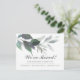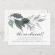 Rustic and simple moving announcements let friends and family know about your new home sweet home! Design features botanical watercolor greenery in shades of dusty blue and green leaves with your custom announcement (shown with "we've moved"), your name(s) and change of address details. Add a personalized message to friends and family on the reverse side of this postcard size card with space for your stamp and recipient addressing.