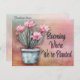 Announce your move in style with this watercolor desert-themed new address postcard featuring a charming blooming potted cactus design. Perfect for sharing your new home details with friends and family, this artistic change-of-address card blends warm desert vibes with a modern, personal touch. The hand-painted cactus in soft watercolor tones brings a fresh, welcoming feel that stands out in the mail. Easily customise with your new address and personal message. Great for housewarming announcements, relocations, or anyone who loves desert style décor.