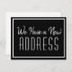 We have a new address cards for a modern business or chic corporation looking to update their clients on a new location. Classy, minimalist typography on sleek black and white cards for your company. Customise the change of address on the back.