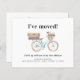 I've Moved Modern Change of Address Moving Announcement featuring a watercolor feminine bicycle with a flower basket and luggages. Perfect to let friends and family know about your new address and where the likely housewarming party will happen. Add your new address by clicking the "Personalise" button