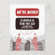 Cute retro style pattern with red and black cartoon buildings for a very exclusive new address announcement.