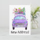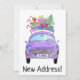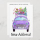 New Address Purple Car with Christmas Gifts Watercolor hand drawn