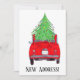 New Address Red Car with Christmas Tree Invitation