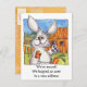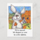 If you recently moved to a new neighbourhood, this cartoon rabbit will get the news across with this cute postcard. Front reads: "We've moved. We hopped on over to a new address" Another little bunny on the back with a thought balloon is giving the new address. All text fields may be personalised and edited.