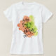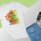 A t-shirt featuring the quote, Every Day is a New Adventure, accompanied by an ink arrow, set against a two-tone watercolor splash background in refreshing shades of green and invigorating orange creates a vibrant backdrop for empowering.