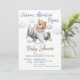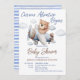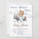 New adventure little tiny pilot aeroplane baby shower invitation template. Cute baby teddy bear aeroplane pilot in the clouds, a tiny pilot is on the way baby shower invitation.