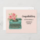 Present your congratulations to a new author with this customisable postcard template. The design features a watercolor vintage typewriter adorned with pink roses. Personalise the greeting or purchase as is to convey your best wishes upon their publishing achievement. This simple yet elegant, vintage-inspired postcard is sure to be cherished by the recipient. (AI art by Susang6)