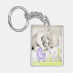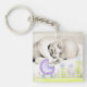 Double sided photo keyring. One side with a watercolor baby carriage and flower illustration.