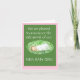 A New Baby Announcement notecard for a baby girl, with a sleeping baby and white lettering on a dark green background, edged with pink. The inside is left blank for you to add the details.