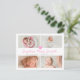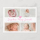 Baby girl, pink birth announcement cards with 4 photos. Matching boys design with blue hearts is also available in my store!