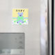 Customise this cute magnet with a babies name, the mum will love it! Soft coloured background in yellow, blue and greens. A sweet little blue teddybear with a big green bow.