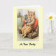 This fun card for cat lovers welcomes a new baby into the world with a beautiful illustration by the famous English cat artist Louis Wain (1860 -1939). Called "Safe in Mother's Arms" it illustrates a story about a missing kitten who is reunited with his mum after a short absence. On being reunited with her precious baby, the mother cat is shown sitting in a cosy room holding the little kitten close to her heart as she feeds him a bottle of milk! Our new baby card would be perfect for new mothers who love vintage cat art but also cat owners who have adopted a new cat or kitten. You can customise the card to suit - add the baby's name, or the new kitty's name, for instance, or your own personalised message. The card would also double up for Mother's Day - just change the text to suit. You can alter the colour of the background on our new baby card too, and add a colour border.