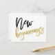 Give someone a boost and send them a postcard with an uplifting message. This has the words New Beginnings in gold and black typography against a white background which can be changed to a different colour if you so wish.