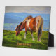 A great picture showing a pony on Dartmoor, quietly grazing. In the background, spreads the vista of north west Dartmoor.