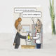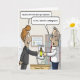 This punny greeting card congratulates the new bosses out there. In a corporate department, the boss asks his employee to produce a ranking report. Instead, the naïve employee gives the boss an informational report about a Rain King. The boss is fuming at how foolish the naïve employee is, and wondering why in the world he hired this guy!