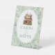 This floral pedestal sign is perfect for a 'New Chapter' baby shower, guiding guests to know where to leave the cards and gifts. Featuring a watercolor stack of floral-decorated books and a soft wildflower background, it adds vintage storybook charm. The classic Old English-style font enhances the nostalgic feel, making it a beautiful and functional addition to your celebration.