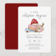 Cute adorable modern winter baby shower theme, Holiday baby shower theme, design feature red watercolor winter floral storybook decor with Christmas santa hat, winter snowflake ornaments, winter flower pine cone and script calligraphy typography "The new chapter begins". you can customize your own unique text and color.