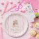 New Chapter Pink Bow Stripes Baby Shower Paper Plate