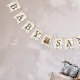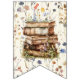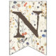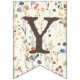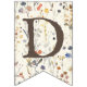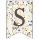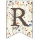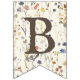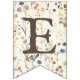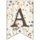 This sweet floral party bunting flags features an illustration in the background of spring wildflowers in soft colours. Centred is old books in a stack with sweet flowers. Part of a collection with the theme "A new chapter is about to be told". It the example the baby's last name is of seven letters. If you want to design it with shorter or longer names each flag has three layers inside the design tool. The background, the letter and the stack of books. Changing the order of the layars you can easily make each flag with or without letter or books.