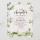 Celebrate a beautiful new beginning with this New Chapter Will Soon Begin Baby Shower Invitation. Featuring watercolor illustrations of stacked vintage books, leafy greenery, a pocket watch, and eyeglasses, this charming design is perfect for a nature-loving, bookish baby shower. With its soft greens and neutral tones, it’s a versatile choice for any baby boy, girl, or surprise! Bring warmth, wisdom, and wonder to your baby shower with this beautifully bookish invitation! BBS701