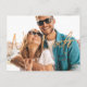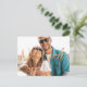 Trendy modern style wedding New Date big copper gold glitter typography hand lettered script overlay and your custom photo making a simple elegant postponement announcement postcard. +++++++++++++ Easy to personalise with your favourite full bleed photo and your details on both sides!