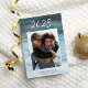 Elegant New Year photo cards feature your favourite photo framed by a watercolor wash background in rich ocean blue. The year appears at the top in calligraphy lettering, with your custom greeting and names beneath.