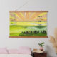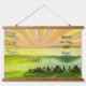 Wood topped Wall Tapestry, a rustic touch with vivid sunrise colours on mountain silhouette with an inspirational quote. The illustration features bright orange, burnt sienna sun rays with birds returning/migrating on a green scenery backdrop. Just right for 'home decor' / 'wall art' / 'home accent' to brighten your walls. Gift it on an occasion like house warming/renovation and more. The TEXT is customisable with your choice of font & script.