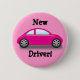 Cute button celebrating one of the most exciting events in the life of a young person-becoming a licensed driver! Pink car with the words "New Driver"