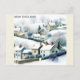 Anyone would love to receive this travel postcard featuring a watercolor illustration of a snowy winter village in New England!