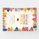 "New Grad On The Block" kids' elementary school / preschool / kindergarten graduation theme featuring illustration of colourful neighbourhood houses and buildings at right around text with graduation cap at centre.