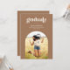 This modern graduation photo card features trendy typography, an arched photo, and a desert-inspired warm brown and light sand colour palette. On the front, "Graduate" is written in bold, modern lettering, with the graduate's name, school, and graduation year below. The typography is light cream against a honey brown background. The bottom half of the card features an arched photo frame. The back of the graduation card includes an optional template to add graduation party details.