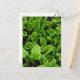 New green hosta plants in garden postcard