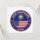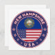 Badge of New Hampshire with flag of New Hampshire and flag of USA colours, rounded shape.