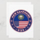 Badge of New Hampshire with flag of New Hampshire and flag of USA colours, rounded shape.